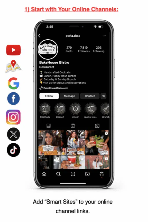 Our Smart Sites are micro-websites that replaces the link in your social media bios and ads, seamlessly guiding interested customers from clicks to in-store visits, turning curiosity into sales. These sites are used to easily gather prospect & customer information and provide high quality advanced digital touchless menus and can even be used for online ordering.